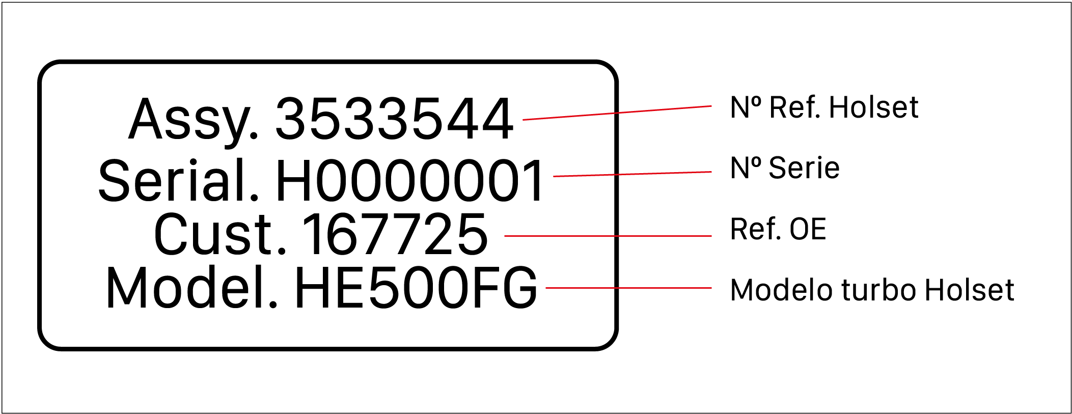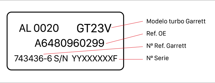 El no cumplimiento de estas instrucciones, el uso incorrecto del turbocompresor o cambios en el mismo, pueden provocar daños en el turbocompresor así como en el motor y la consecuente pérdida de la garantía. La mayoría de las averías del turbo son producidas por causas ajenas al mismo, tener en cuenta estas instrucciones es vital para el buen funcionamiento del mismo así como alargar la vida del turbocompresor. Recuerde que la garantía sólo cubre la reposición o reparación del turbo y nunca los costes de montaje del mismo ni grúas, ni otros gastos que se puedan ocasionar. Antes de realizar el montaje hay que saber las causas de la avería. Para que el problema no vuelva a surgir, se comprobará si ha sido producido por el mal funcionamiento de otros componentes. Cada turbocompresor está diseñado para corresponderse con un motor específico y recibe un número de pieza y un número de serie individual.